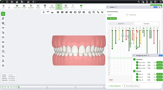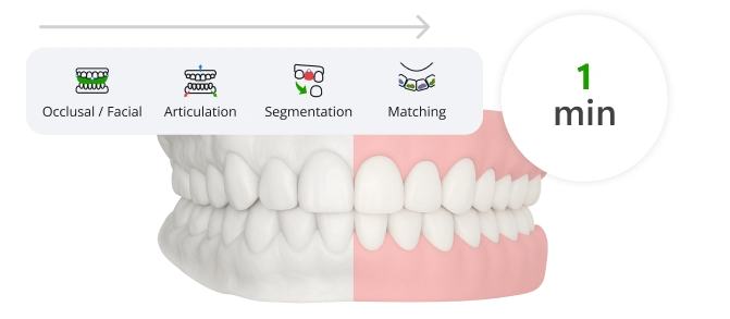 Speed through routine setup with AI tools that complete scan cleanup, segmentation, and matching in under one minute. Smart presets for final positioning and staging help your team finalize treatment plans