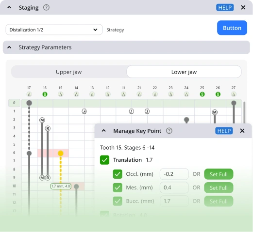 Fine-tune or approve the AI-suggested setup using smart presets that align with your lab’s preferences and clinical standards.